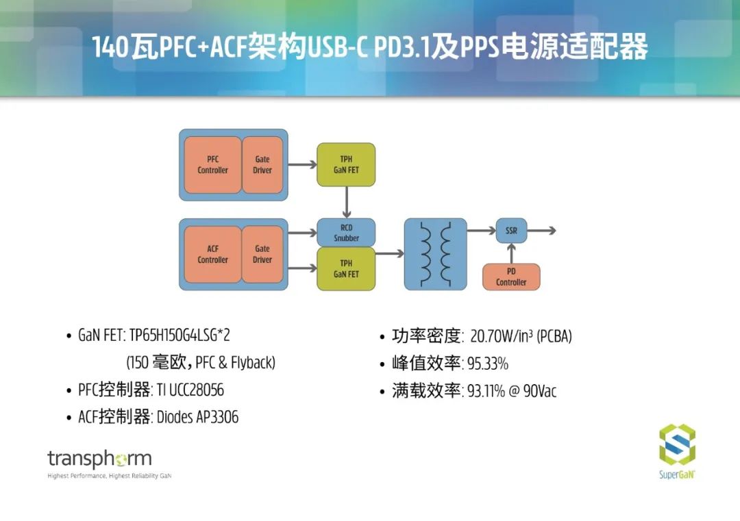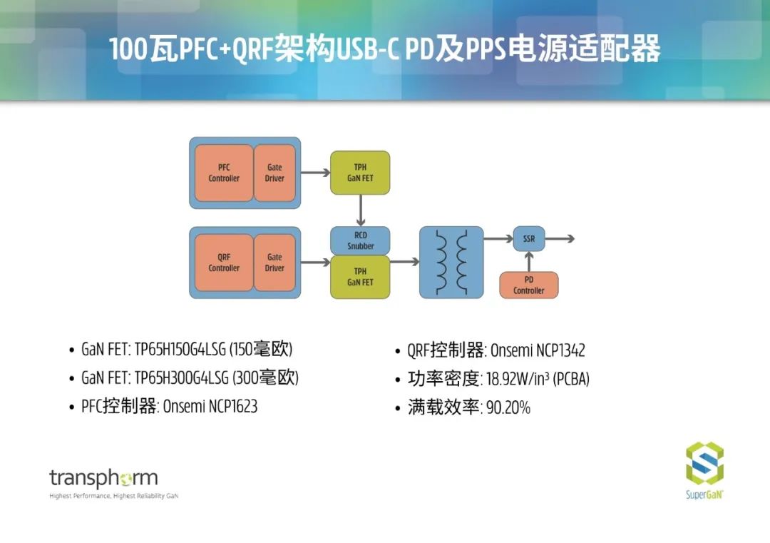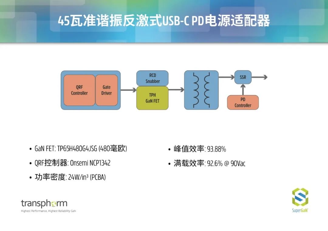 Transphorm的八款基於氮化鎵的快充參考設計,可幫助客戶加快電源適配器開發。這些參考設計組合包括廣泛的開放式框架設計選項,覆蓋多種拓撲結構,功率段可應用於45W至300W,功率密度範圍可做到18至30W/in³,功率轉換效率超過94.5%。
